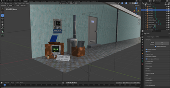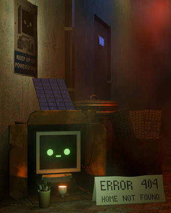 This is an art piece I made with Blender for the 3D Modelling Jam with Blender #2. It depicts an obsolete service robot in a neon-lit alley of a cyberpunk city.